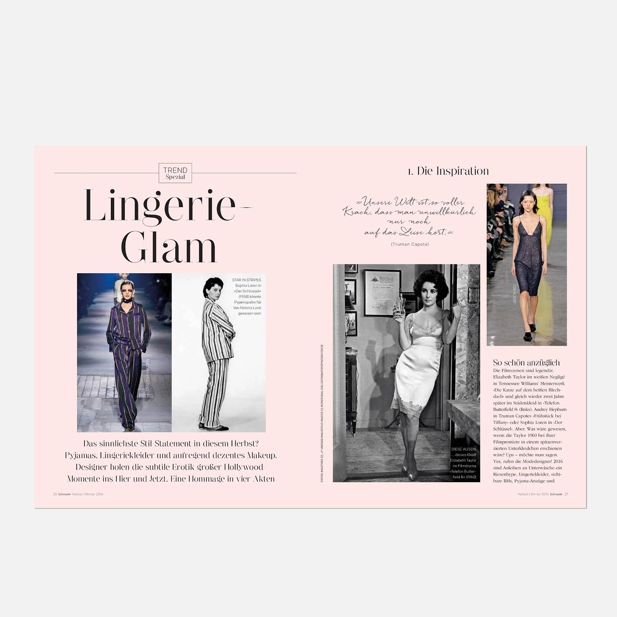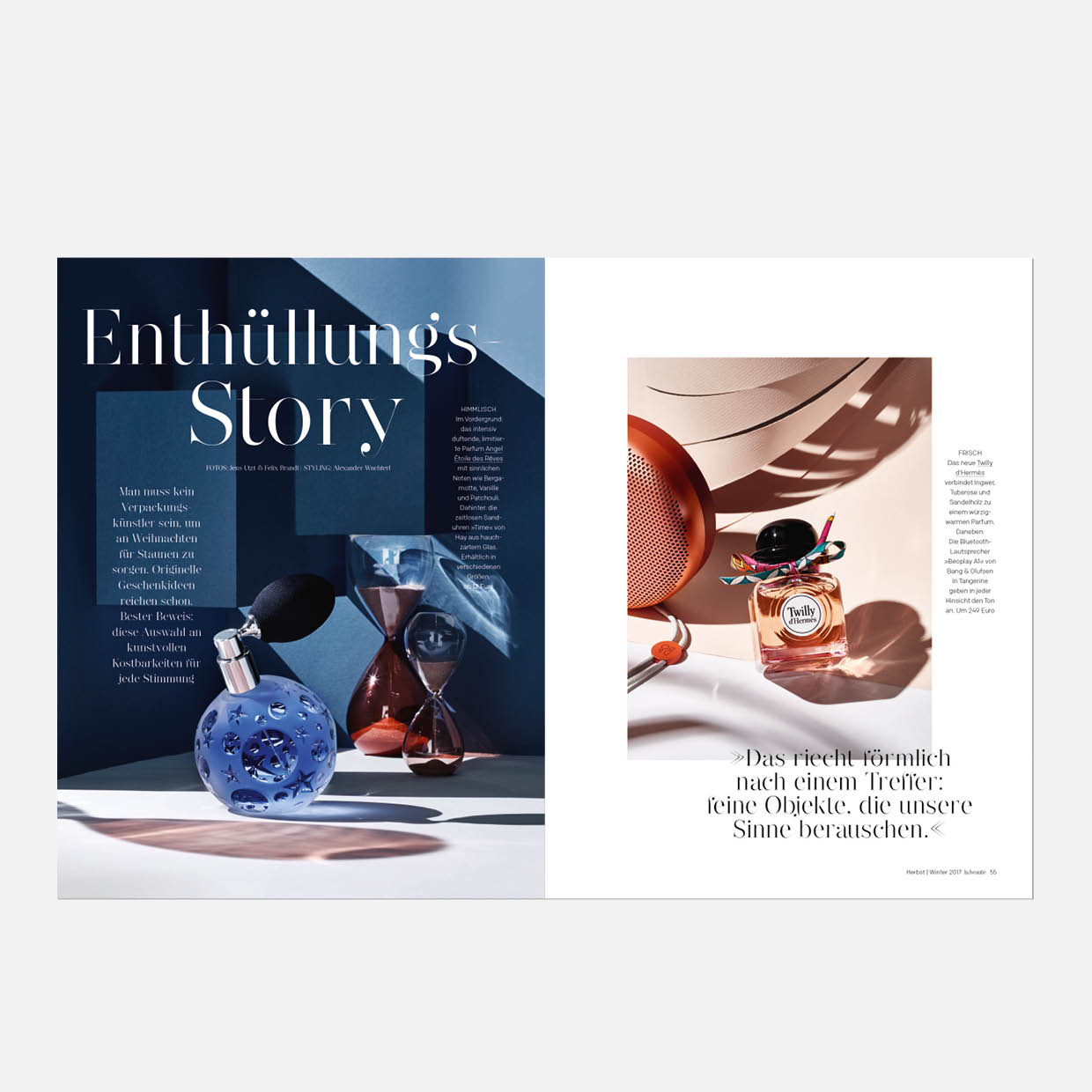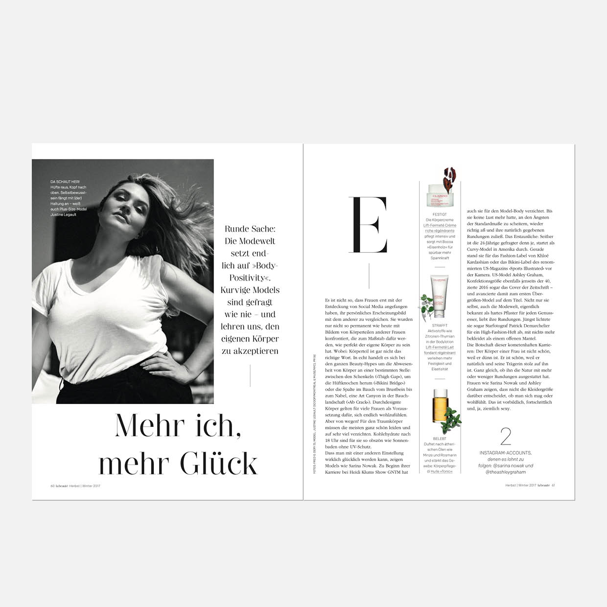 Konzeption und Art Direction für das Kundenmagazin von Clarins, realisiert mit Burda/C3. Ein Magazin, das Frauen feiert. Selbstbewusst, klug und mit einem Twinkle in the Eyes. Modern und hochwertig, dabei direkt und nahbar. Keine großen Parolen, sondern starke Momente mit Augenzwinkern. Das Design ist klar und zeitgemäß, mit Sinn für Details. Eine Bildsprache, die Nähe schafft und Produkte selbstverständlich einbindet.